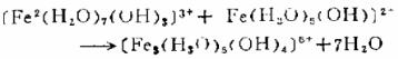 聚合硫酸鐵加入氟化鈣膠體溶液中即發生水解,在水解過程中產生大量的多核絡合物,通過膠粒表面的粘附、架橋、交聯等作用,促使氟化鈣膠體離子凝聚,產生結實的絮狀物快速沉淀。聚合硫酸鐵絡離子的水解,聚合、沉降等一系速反應可表示如下: